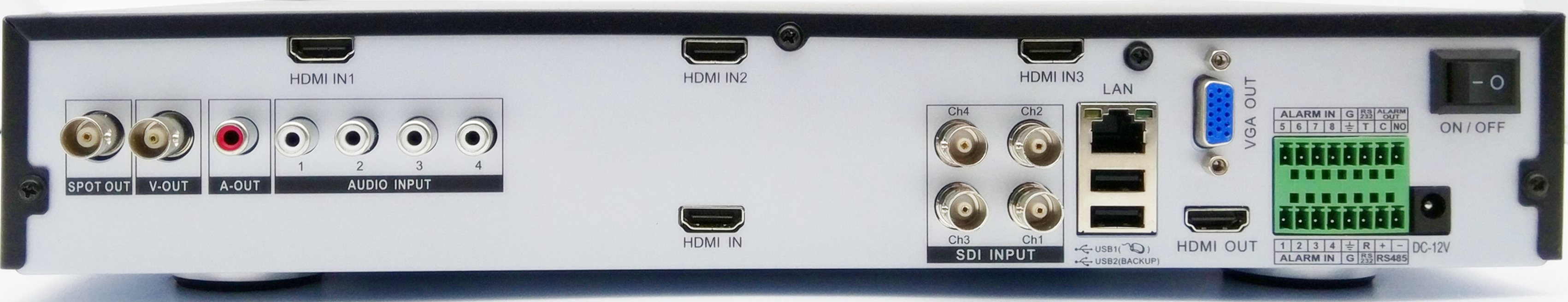 4 channels video input;Multi-signals displaying;Multiplayer network operation;Backups in USB device. |
