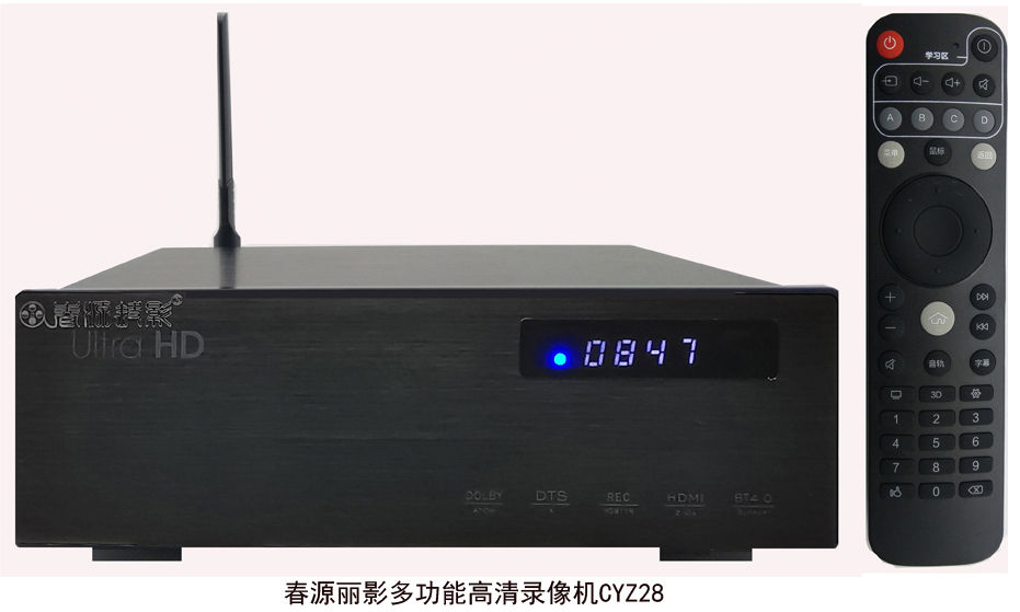 目前,春源丽影蓝光高清录像机,有支持4K高清录制的 4KR-03型号;有支持1080P60录制的UHD-02型号;有自带7寸屏幕支持1080P60录制的 UHD-03型号;有本身就具备了网络机顶盒功能,又能录制数字电视机顶盒的CYZ18机型;有不仅本身具备了电视机顶盒功能,也能录制数字电视机顶盒,又能录制本机播放的节目的CYZ28机型。