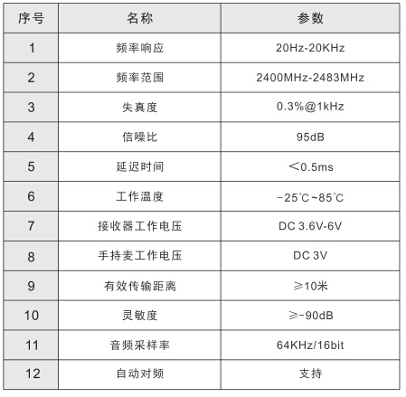 采用行业内最高无线传输芯片配置,利用国际免费频段,高达2.4G的传输频率,能理想的抗干扰,在无障碍阻挡的会议室里,即使远达10米,声音也清晰洪亮,没有噪音。