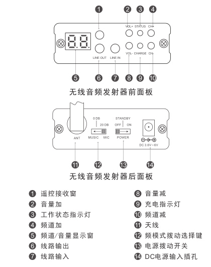 在接收器面板有话筒音量调节按钮,可以根据需要增大或者降低音量。