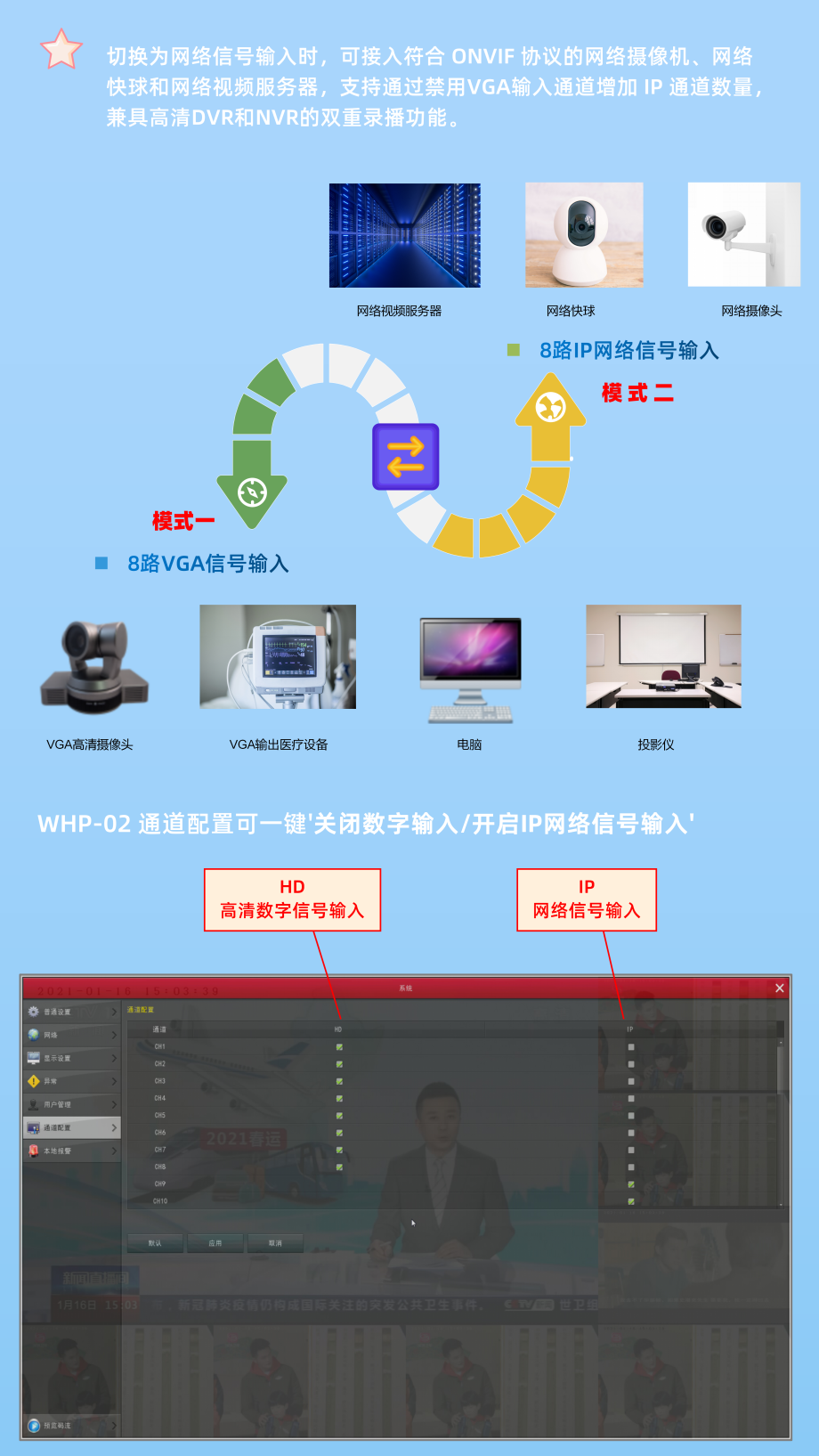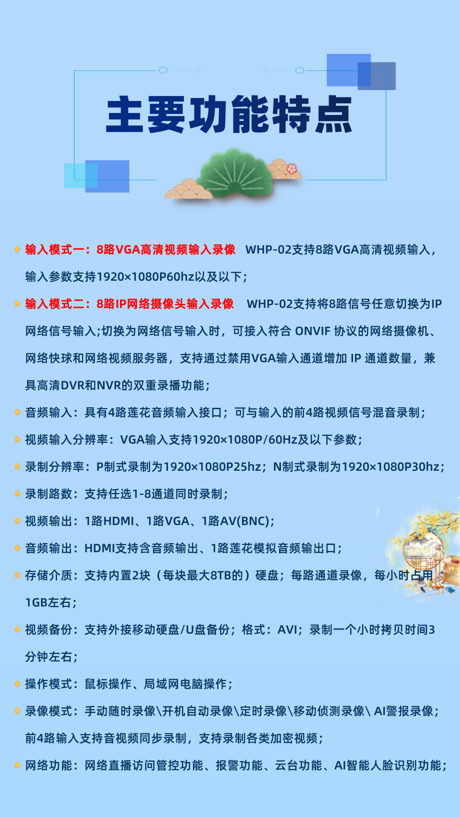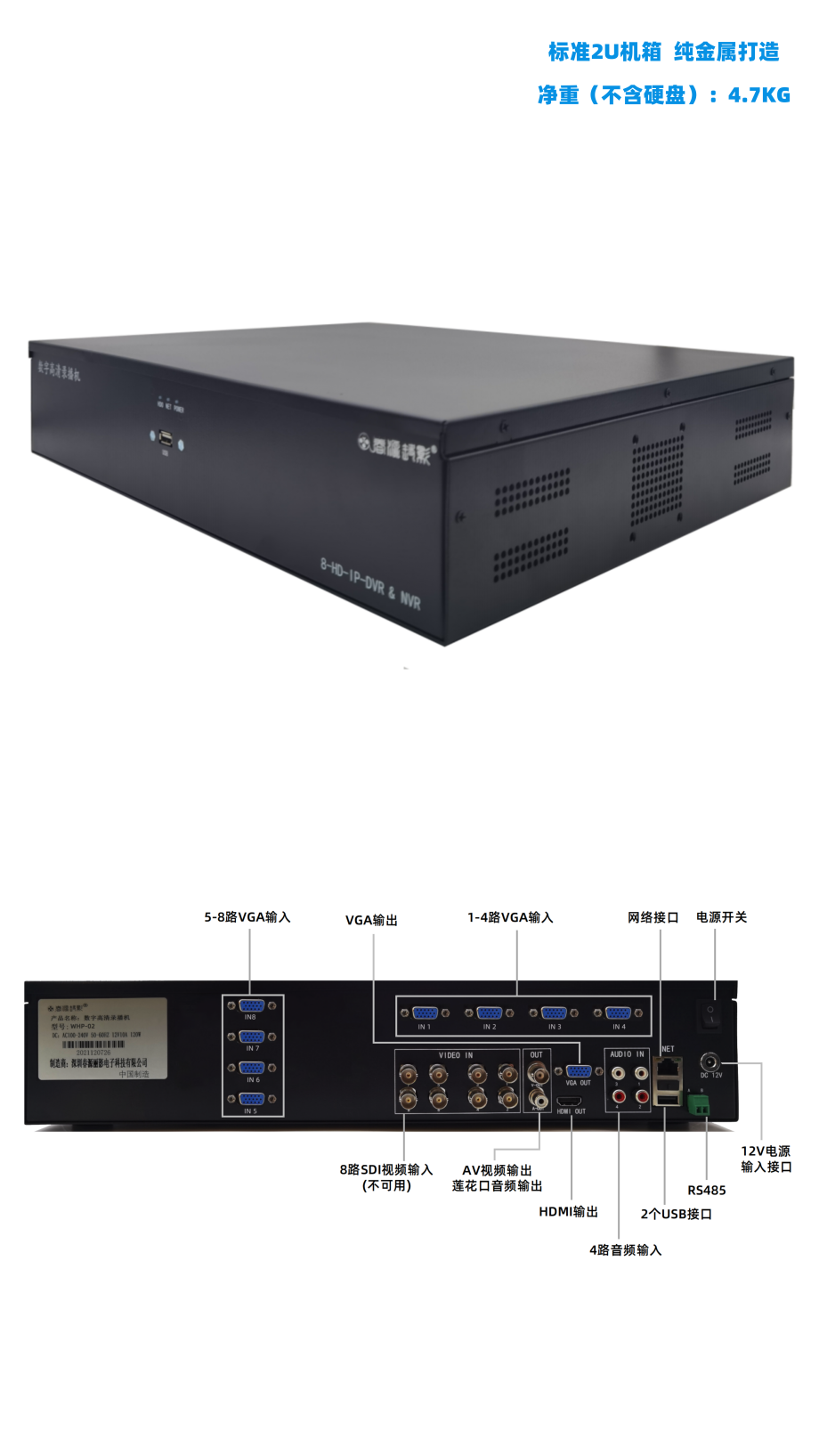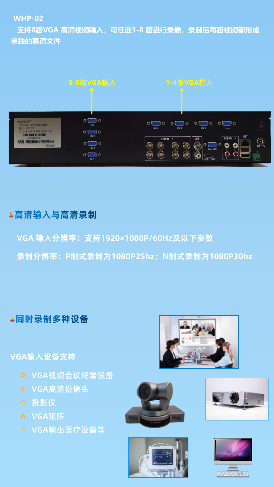 8路VGA8路网络摄像机输入录播机WHP-02