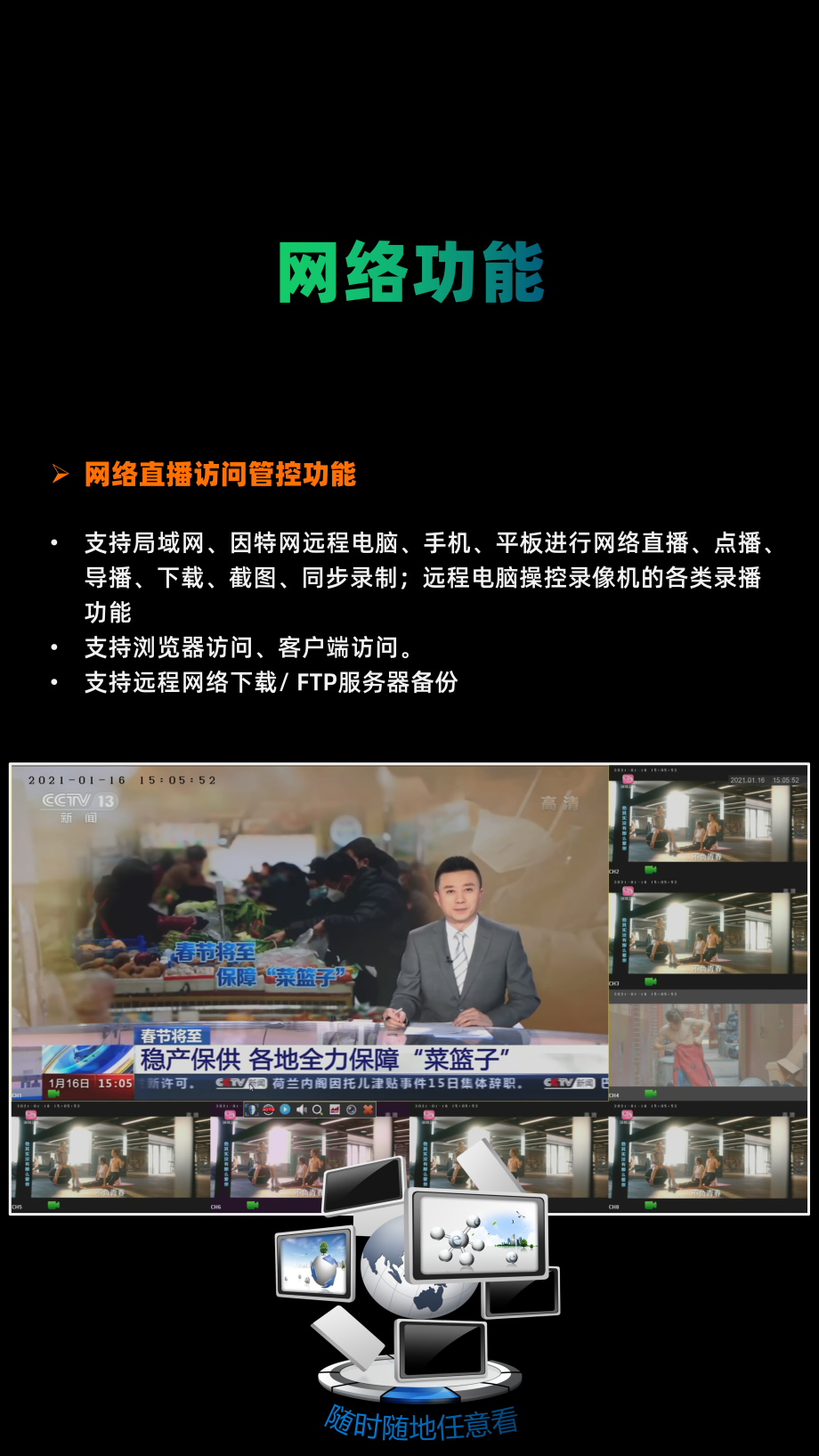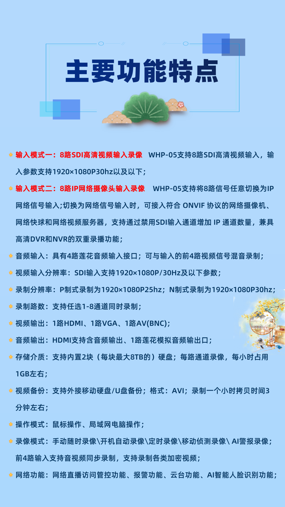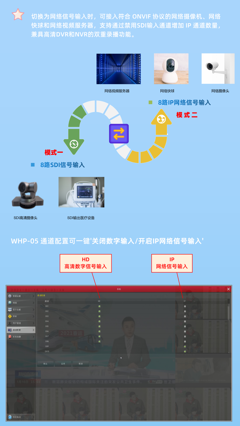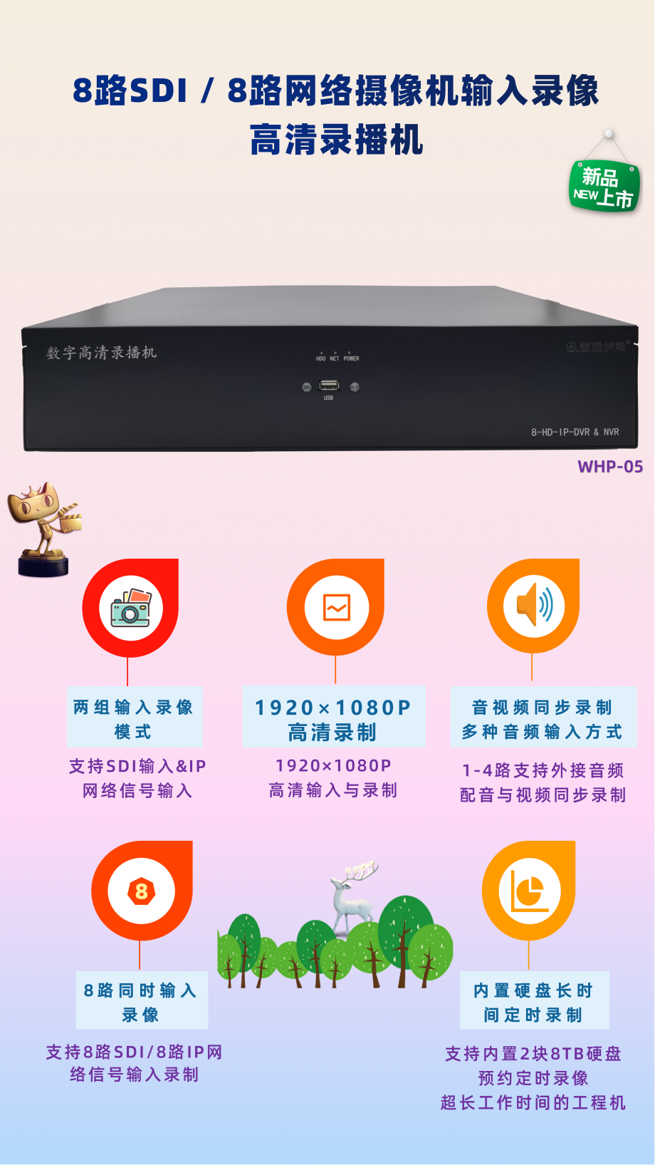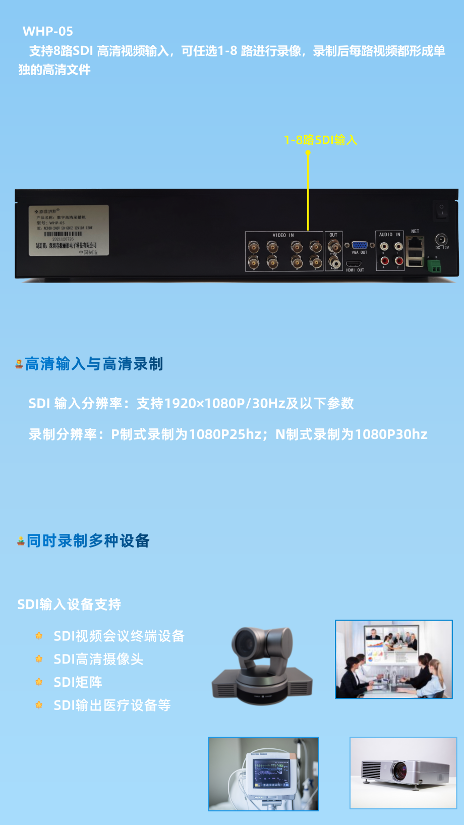 8路SDI输入8路网络摄像机1080P高清录播机WHP-05