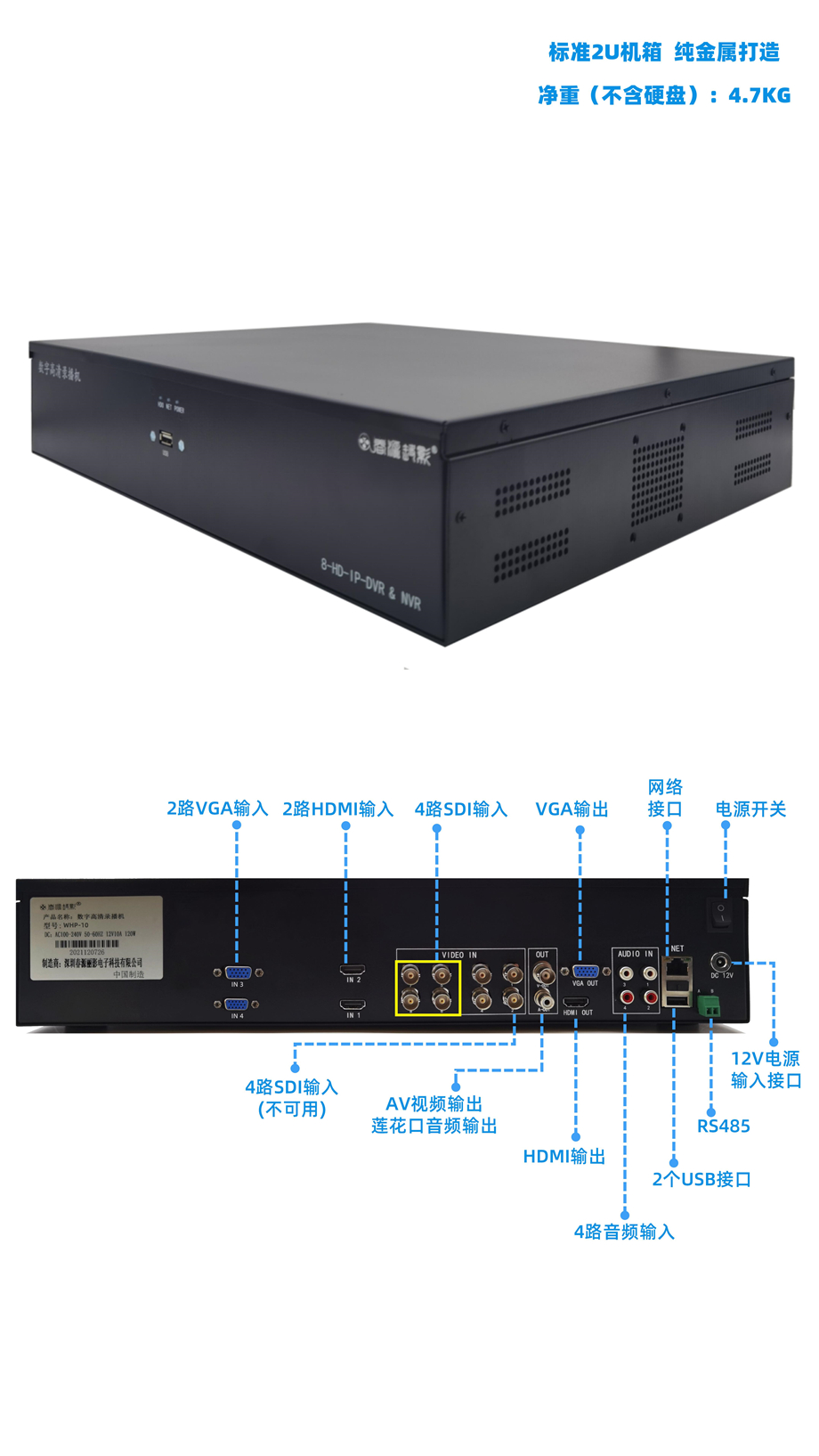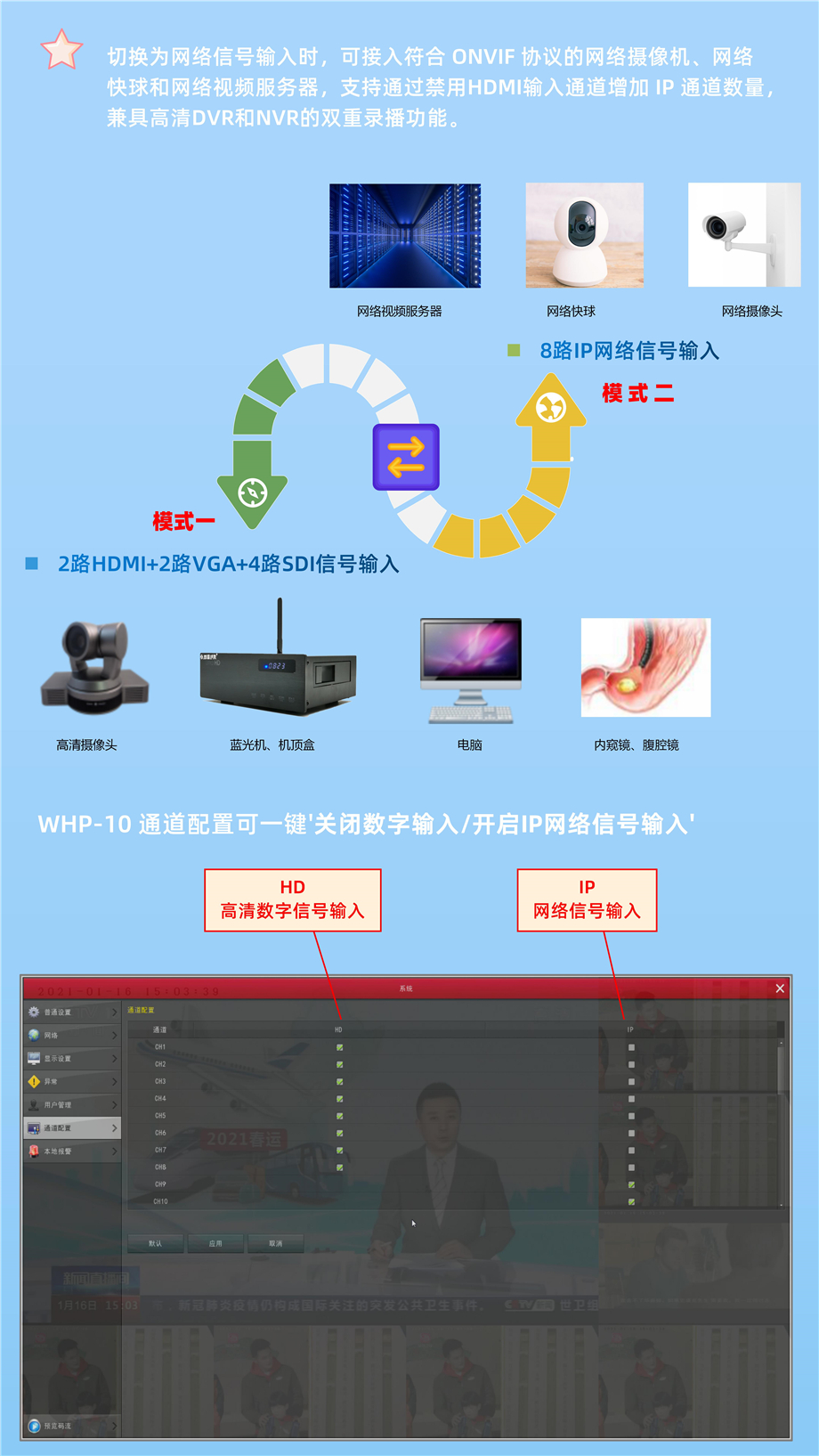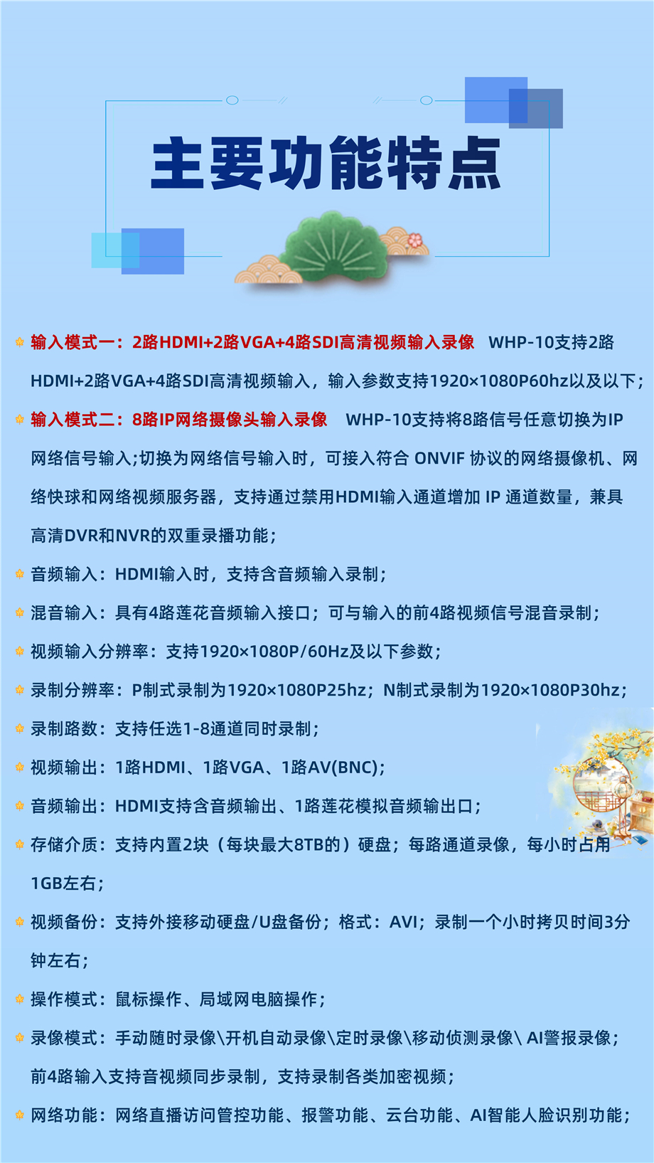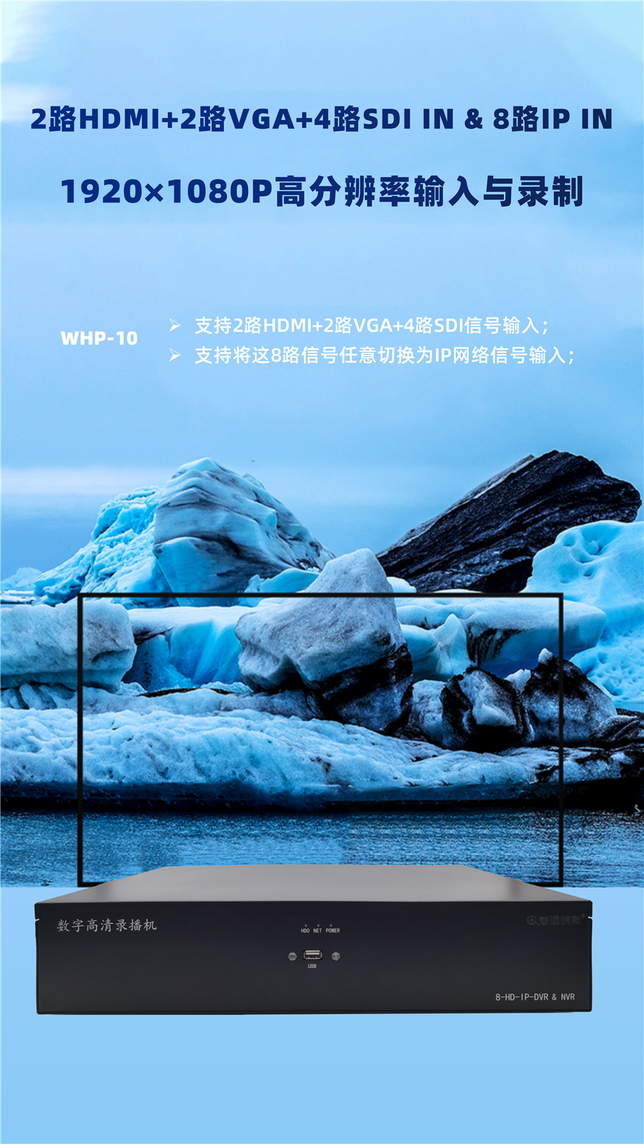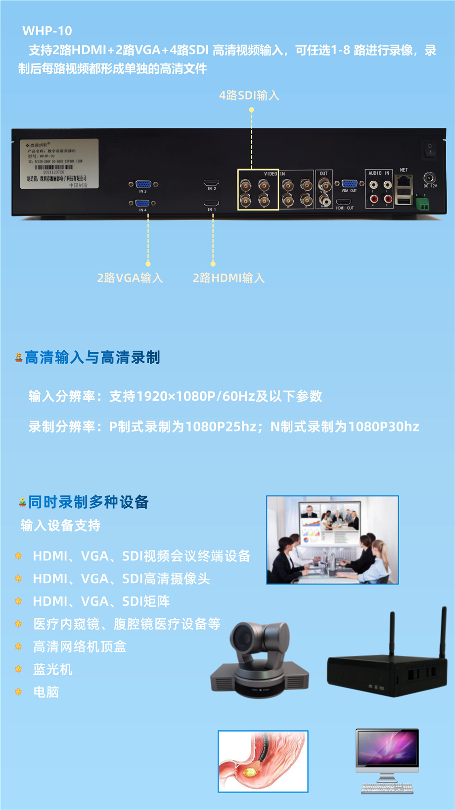2路高清2路VGA路4路SDI网络摄像机录播机WHP-10