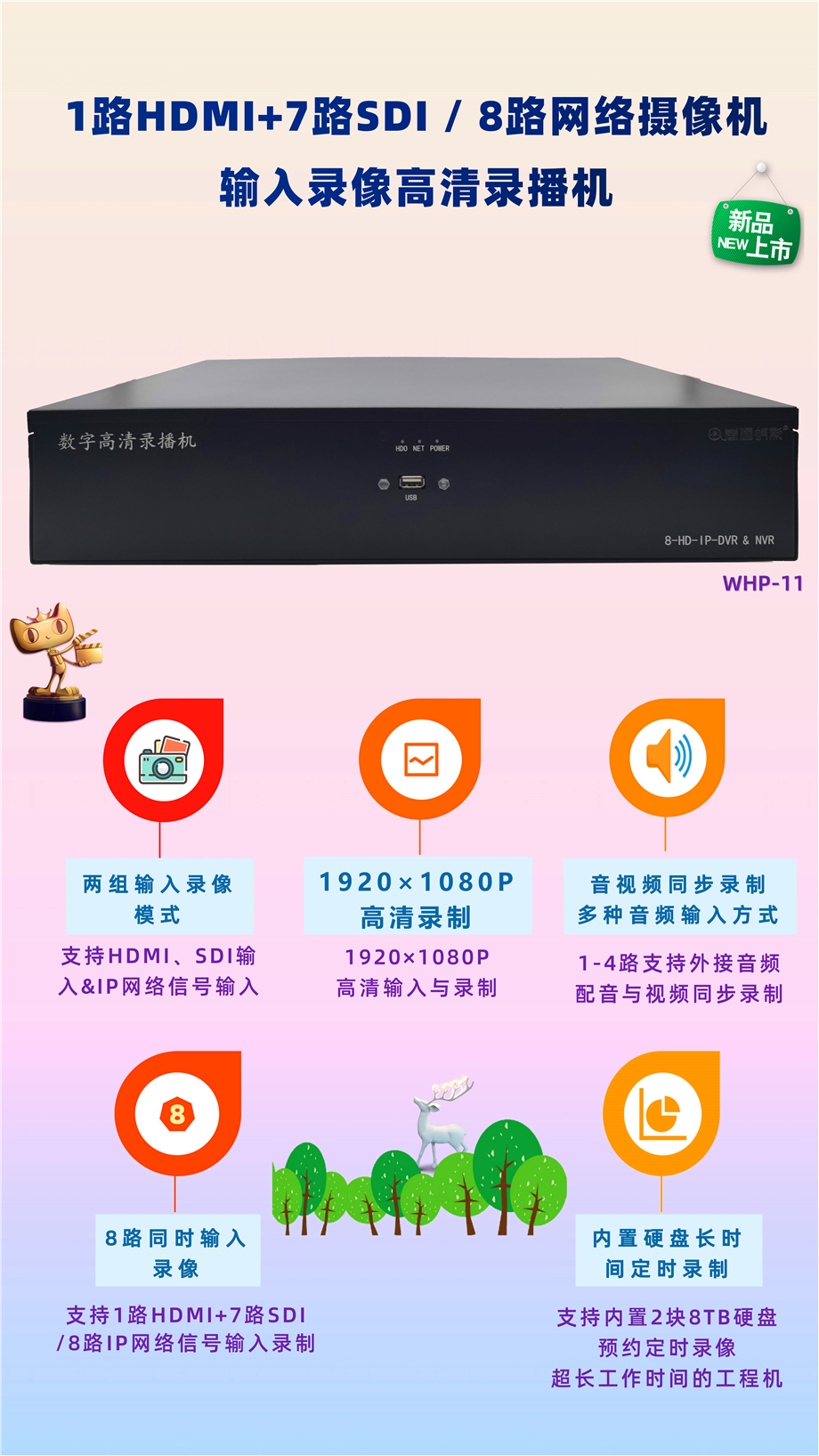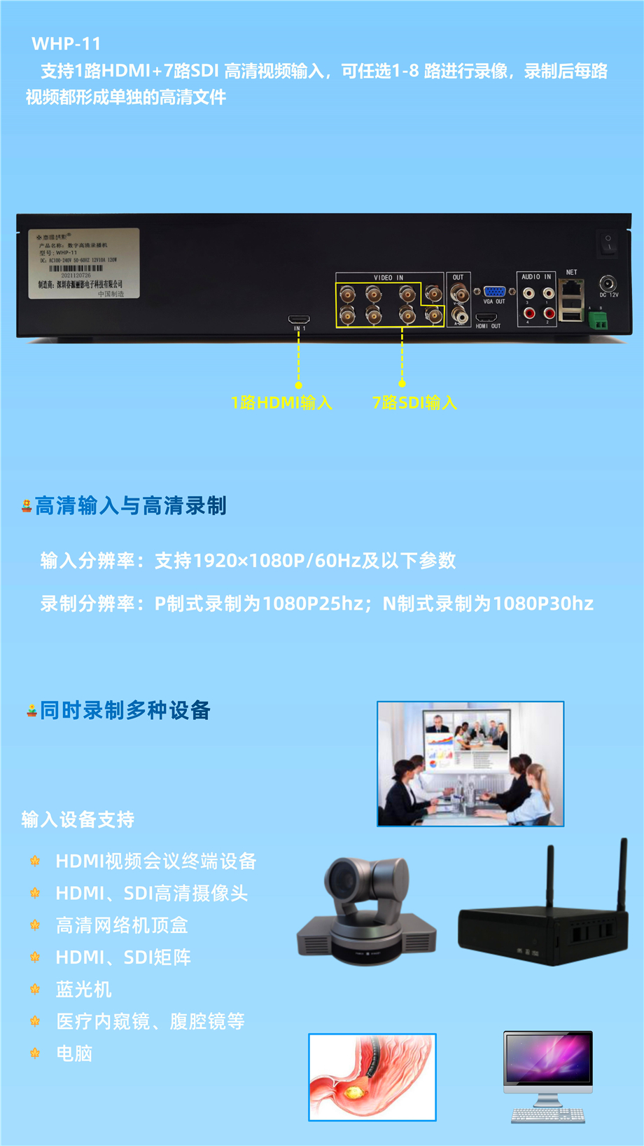 1路HDMI7路SDI8路网络摄像机输入录播机WHP-11