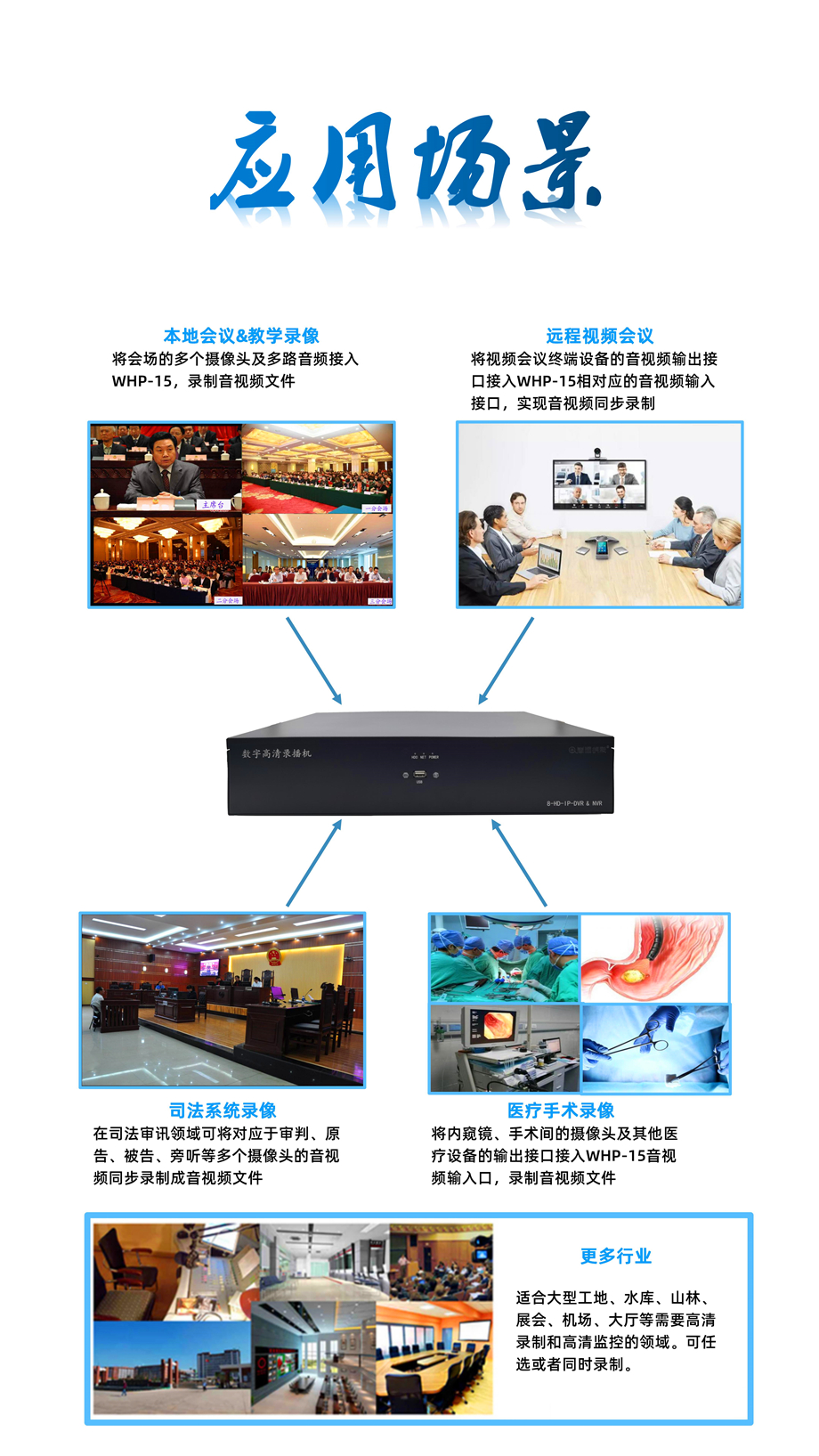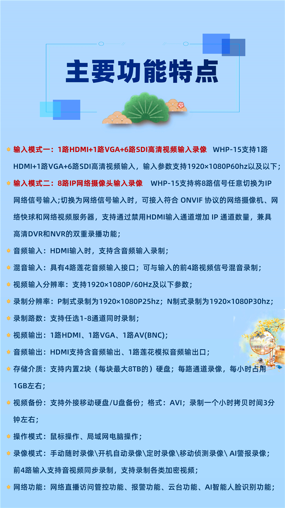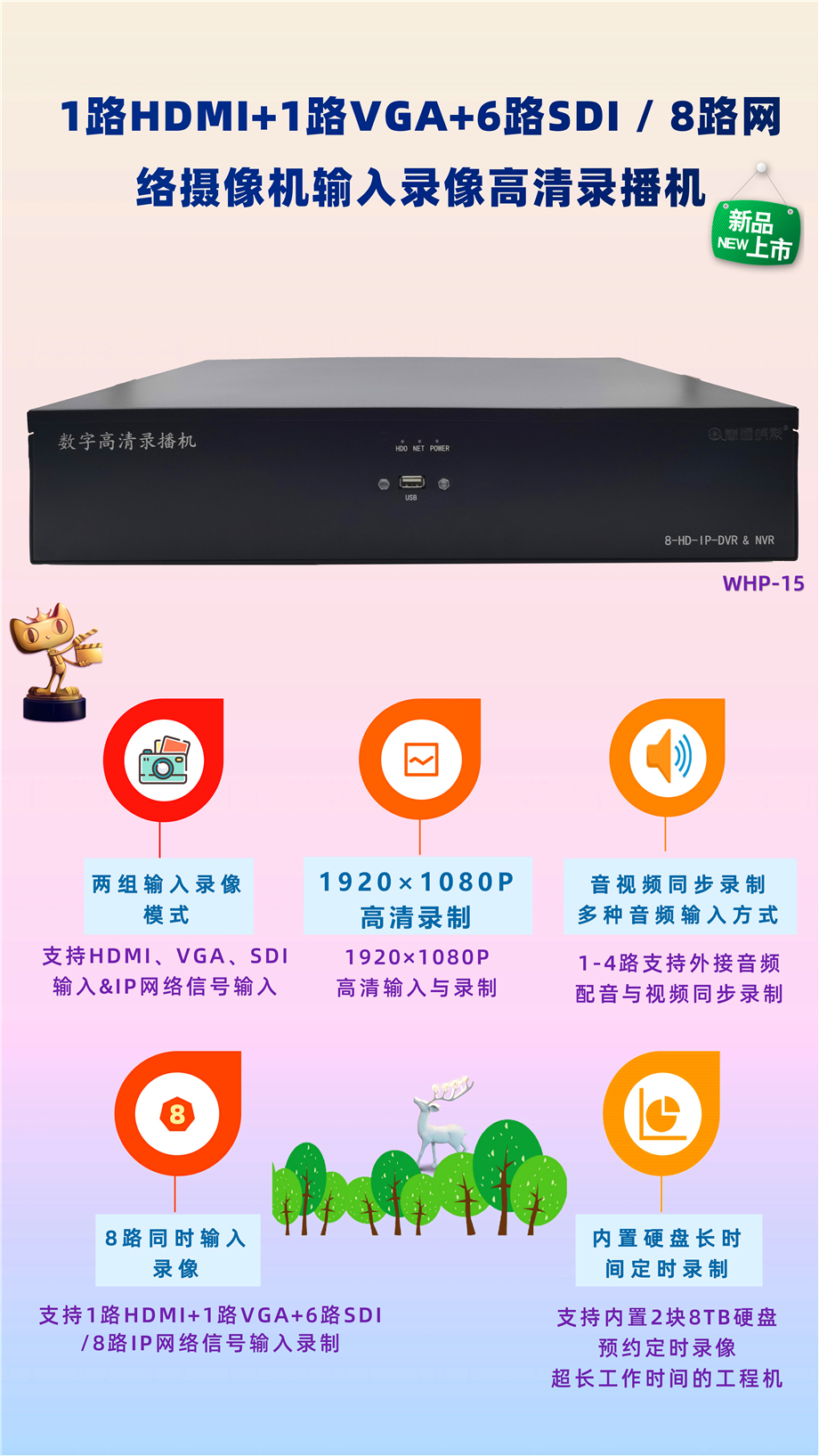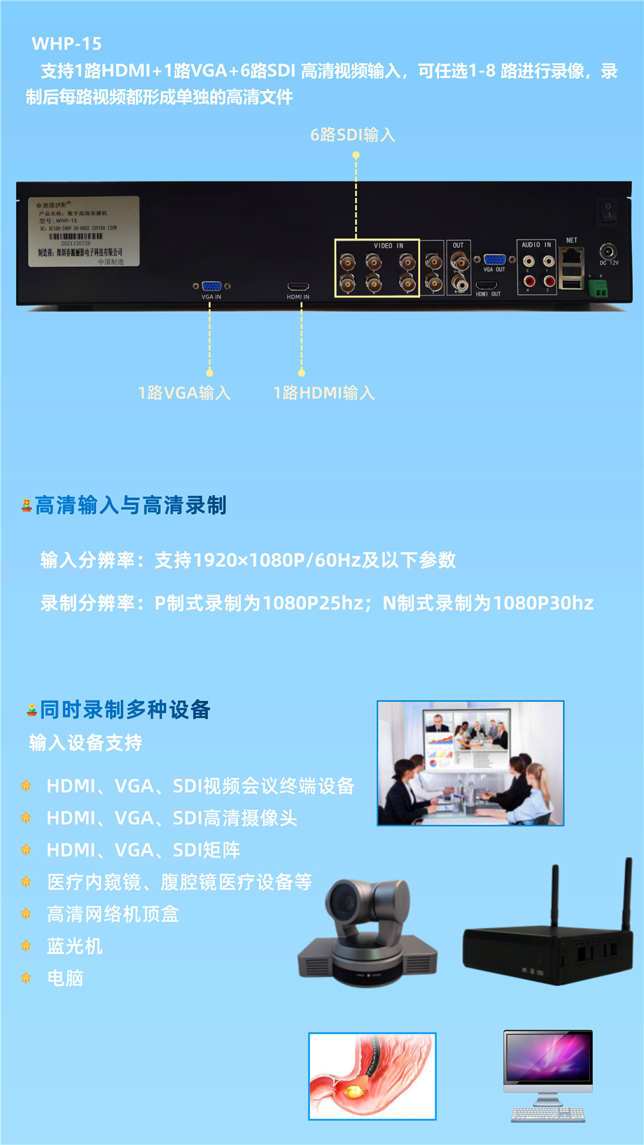 1路HDMI1路VGA6路SDI输入8路摄像机入录播机WHP-15