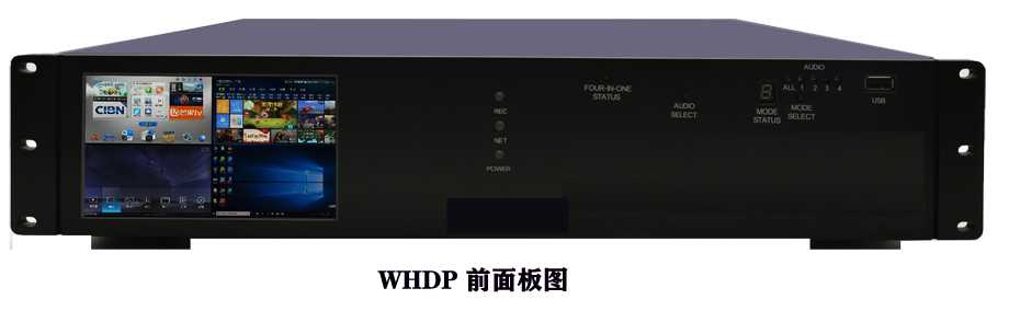 WHDP-01机型,是在WHDpro-01的前面板上嵌入了一块7寸高清显示屏,支持含音频播放,对置放在机柜里不便外接电视机显示器的用户操控使用,极为方便。其他输入、输出接口、录像功能以及操控模式,均与WHDpro-01一样。