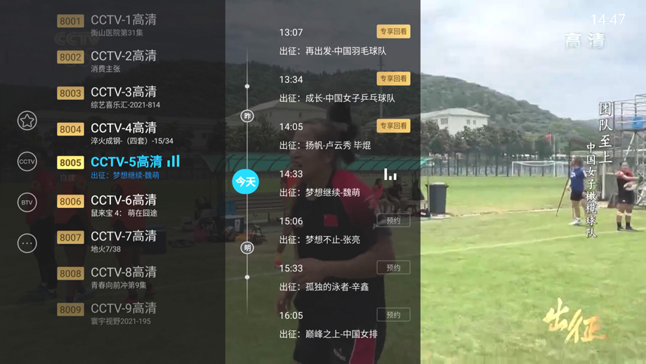 机器安装的电视直播软件,可以一键回看过去一周的电视直播节目,欣赏奥运赛事,一场不丢!
