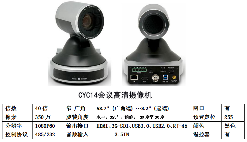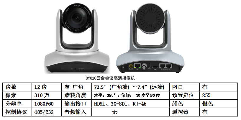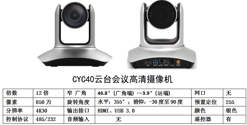 六、12倍4K 850万像素云台会议高清摄像机CYC40