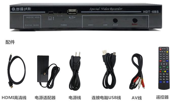 视频输入接口:1个HDMI、1组AV(可任选一路输入录制)