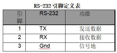RS-232接口引脚功能说明如下表: