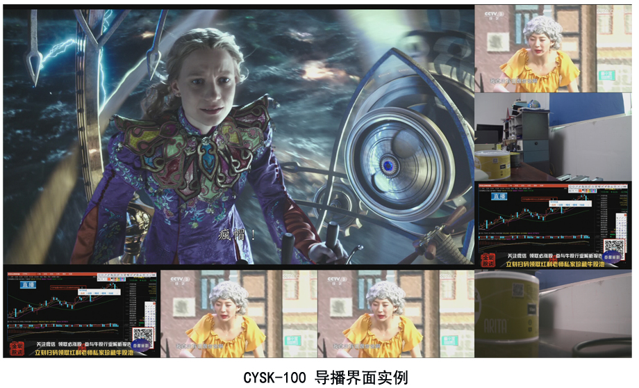 12、导播画面:任选单画面、多画面、画中画导播画面;30个固定画面模式;可编程界面