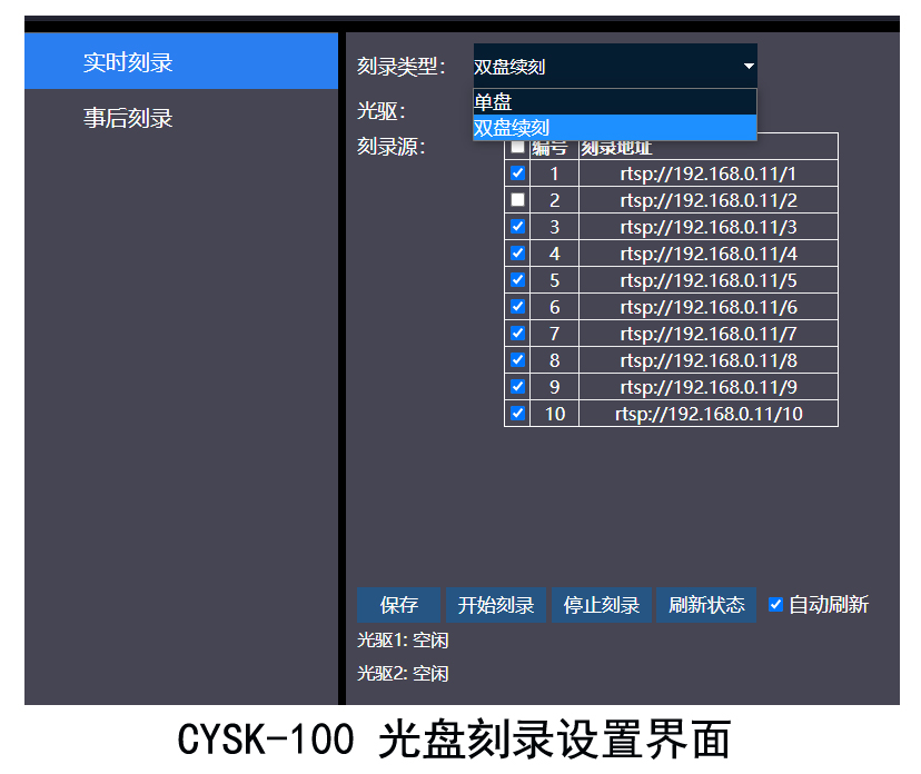 2、既能单光盘、双光盘实时刻录;又能单光盘、双光盘事后刻录。