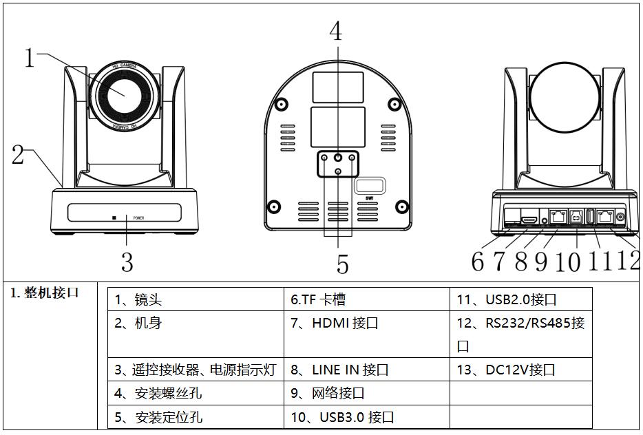 ●TF卡录制功能 支持512GB大容量TF卡,可以录制1080P30高清视频,带有3.5音频输入接口,支持音视频同步录制。