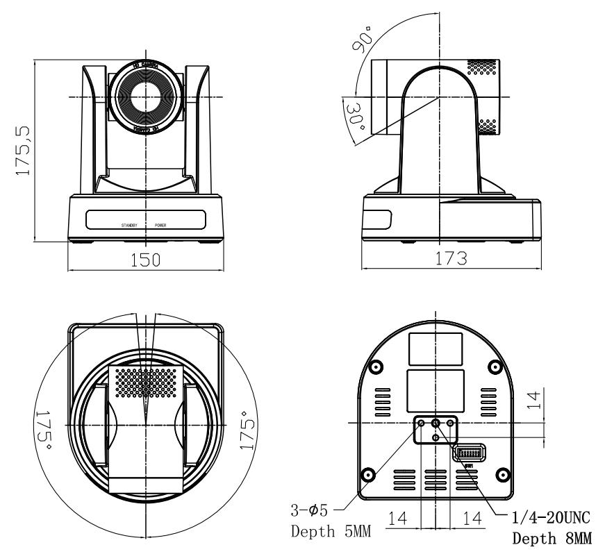 配备有操作简便的遥控器,除了可进行基本设定,以及对水平、俯仰、变倍等进行控制外,还可以通过遥控器调出菜单设定摄像机的相关参数。