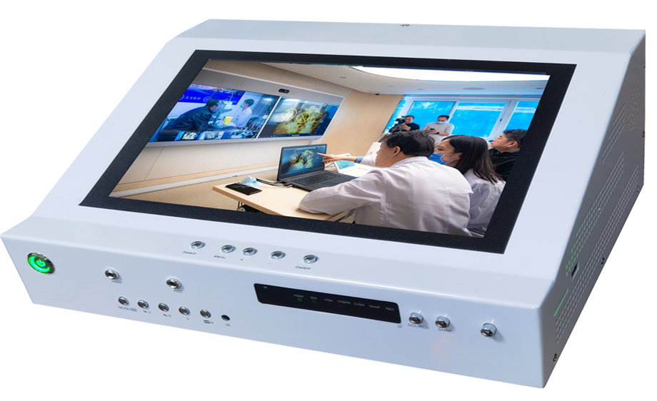 UHD-11录像机,以桌面式倾斜屏幕设计,视角科学,16:9的1080P60分辨率的10.1寸高清显示屏,可清晰显示腹腔镜采集的细腻画面。自带双喇叭,方便回放时能同时听到有医生配音的录制视频。