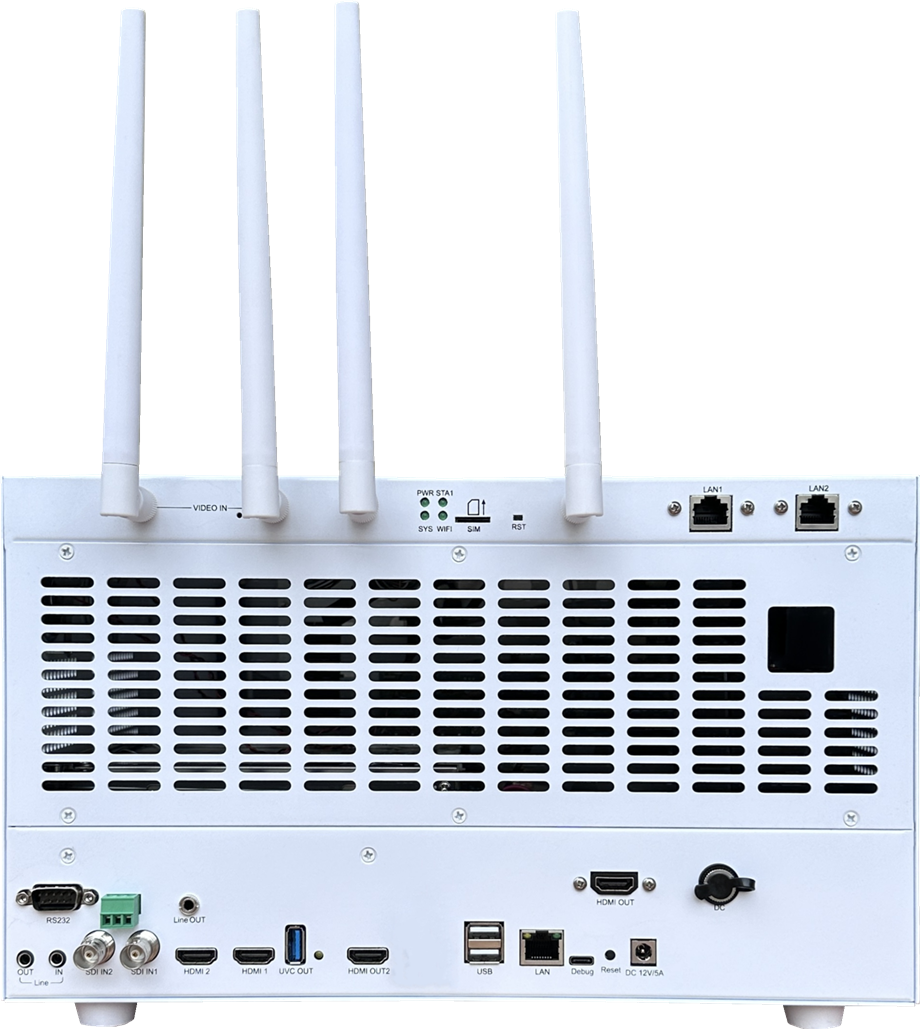 现场如果没有无线网络摄像机,也支持2台HDMI输出接口、2台3G-SDI输出接口的高清云台摄像机或者高清播放设备直接通过视频输入接口输入。也支持网络信号与HDMI、SDI混合输入;可支持6路信号输入录制。