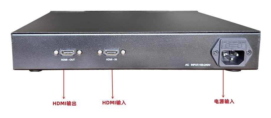 具有1路HDMI、1个USB视频输入接口,具有1个HDMI、1个UVC输出接口。