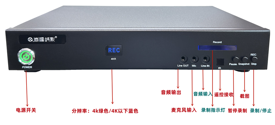 4KR-05是深圳春源丽影电子科技有限公司近日研发推出的一款多功能4K高清录播录音主机。该机支持4K30高清音视频录制,也是一款多功能MP3会议录音机。该机集4K高清录制、多功能录音、高清截图、高清播放、UVC推流直播五大功能于一身。支持一键录制、暂停录制、预约录制、无信号停止录制;支持文件搜索、文件排序、文件重命名、文件删除、支持多语言选择等丰富的功能。4KR-05机型是单路HDMI、USB信号高清录制的完美之作!适用于4K3D蓝光高清录制、医疗手术录制、视频会议录制、本地会议等各类领域的录制、录音、拍照使用。