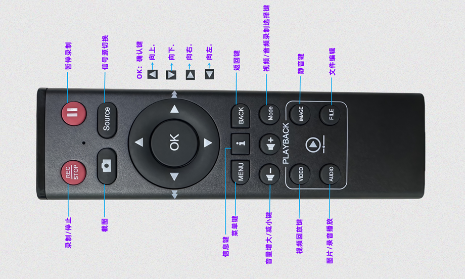 ✅ 遥控器:录制 / 暂停 / 截图 / 音量调节单手掌控