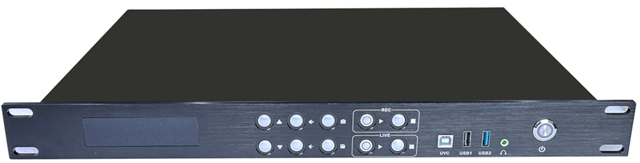 • 操作与维护:设备前面板集成了丰富的实体按键,包括电源、输出音量加减、导播手动/自动模式切换、抓图、文件管理、录制开关、直播开关以及LED显示翻页键,实现盲操与快速控制。具备一键系统恢复与刷机接口,支持本地UDP与公网TCP远程唤醒,极大简化了运维管理。