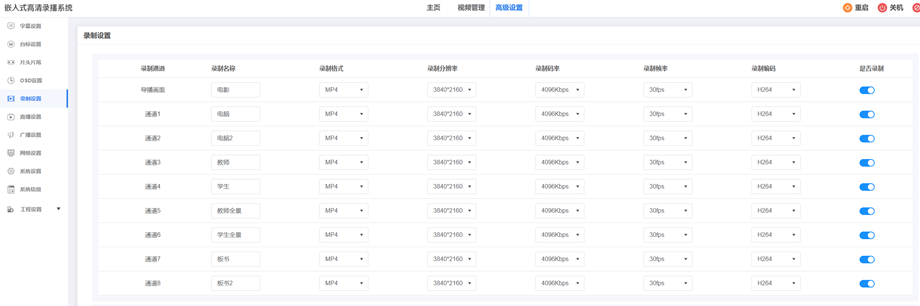 • 智能录制控制:提供通电自动录制、面板一键录制、定时预约录制等多种启动方式,并支持通过本机接电视机或显示器、WEB浏览器端及中央控制系统进行灵活操控。