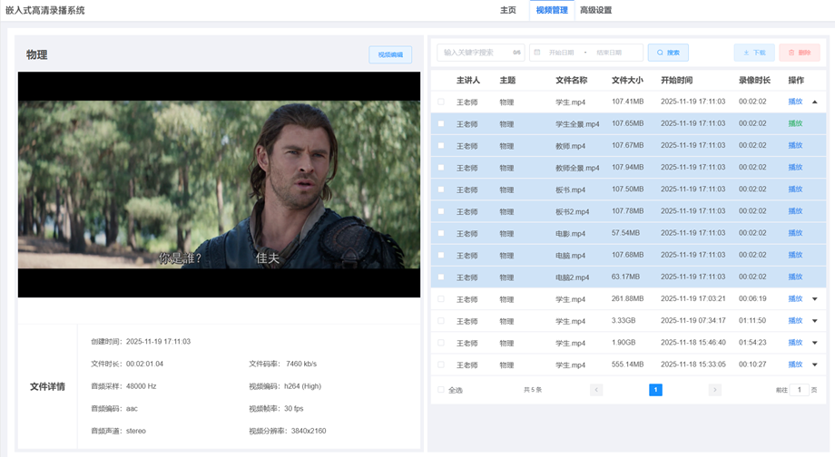 • 多通道录制:支持1路电影合成通道 + 8路资源通道同时进行9路高清录制,录制分辨率最高可达4K30。用户可根据需要选择MP4、TS、MOV等多种录制文件格式。