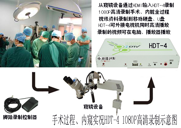 春源丽影HDT-4高清医疗手术录像机,利用 HD TRANSCODERC++芯片,采用HDMITM技术,可从不同的讯号来源(HDMI与AV影音)来接收视讯与音讯后录制到USB外接装置(U盘或是移动硬盘)。它采用最新的H.264(AVCHD)即时压缩方式,提供高效率的压缩技术,支持数位与类比的影音源,可同时由HDMI与AV影音端子输出。录制好的档案格式可以透过多媒体播放器,蓝光播放机,电脑或是直接在HDT-4医疗录像机上播放观看。