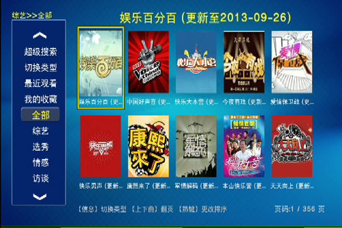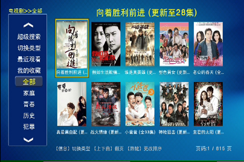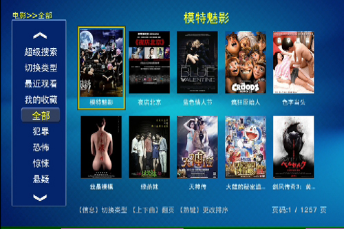 依次打开每个入口,则是相应的视频选择界面。如打开电影入口,左边为分类,右边为具体视频选择界面。而且左边还有搜索功能。其他动漫、综艺、电视剧入口也是如此。