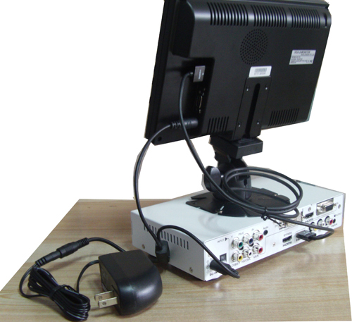 之所以设置8寸高清机顶显示屏,是为了方便系统设置配置的。因为该机具有暂停录像功能,在进行暂停录像操作时,必须准确根据播放源的实际时间进行操作,而经过主板压缩的视频信号有一定延时性,为了能准确显示播放源的实际播放时间,HDT-5设置了两路HDMI输出信号,一路是没有经过压缩的BYPASS信号,可以即时准确显示播放源的实际进度,该路HDMI信号连接大屏电视机,可以方便大厅客人观察和鉴赏,同时,只有在该路信号下可以进行随时准确的暂停录像和续录操作。另一路是经过主板压缩输出的HDMI信号,该路信号连接机顶8寸高清小显示屏,在该路信号状态下,可以进行各类丰富的系统设置等操作。
