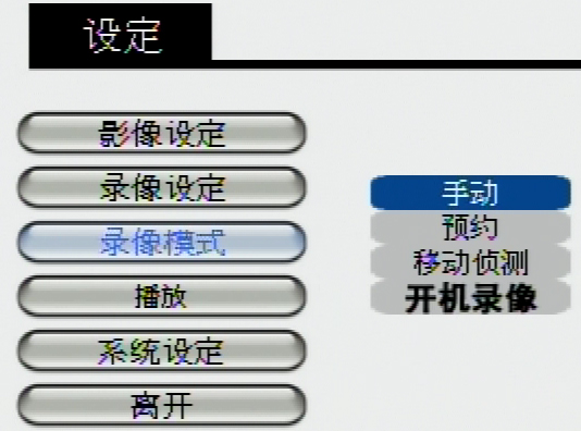 该机的录像功能非常实用和全面。该机支持手动随时录像、开机录像、预约录像、侦测录像四种模式。录像的画质可以灵活的设置。可以设置高、中、低三种画质;帧率有30fps、15fps、5fps三个选项;具有D1、VGA、QVGA三种分辨率选择。如果要想录制最清晰的画质,可以选择高画质、30fps、D1的分辨率。