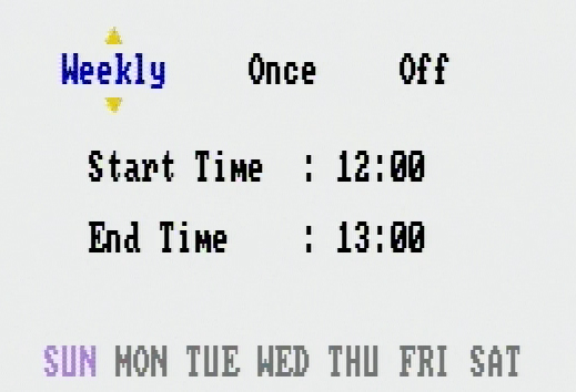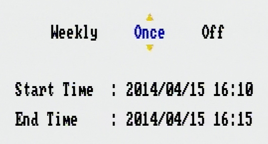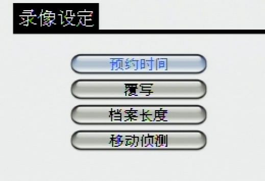 该机的预约录像支持多时间段设置,分一周设置和每天设置。可以分别设置一周七天每天的录像时间段,而每天又可以设置最多四组时间段,设置好开始时间和结束时间后,到时则会自动开始录像,录制到结束时间则自动停止。对存储空间的占用可以设置为自动覆盖和不覆盖两种模式。每个录像文件的大小可以以时间段自由设置,可以选择5、10、15、20、30、60分钟大小。
