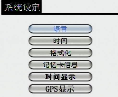 录制播放截图 该机的系统设置比较便捷。不仅可以设置中文、英语、日文三种语言,还有时间设置和是否显示、SD卡格式化、信息显示、GPS显示等丰富的功能。