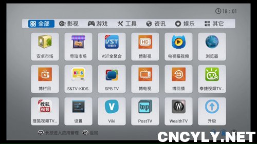 一般将安卓市场、奇珀市场、浏览器、装机精灵、QQ等放在工具端口;直播、点播、电视回播等客户端放在影视端口;歌曲、综艺放在娱乐端口;课辅、健身、烹饪等放在其他端口。