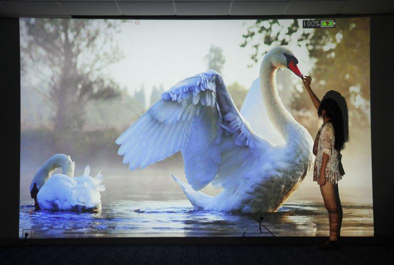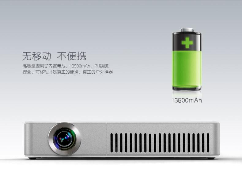 在商务应用领域,移动商务也是春源丽影WT-04智能投影的一大亮点。WT-04智能投影配置了高容量安全锂离子电池,13500mAh,2小时稳定续航,在没有电源的场合同样适用,随时随地都可以展示。