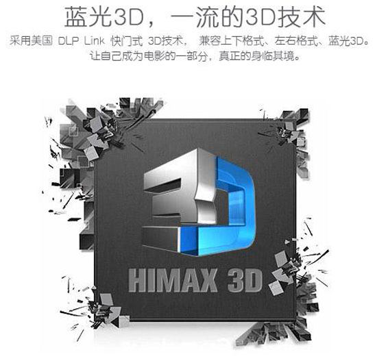 主动式、全解码,包括了2D转3D、左右格式、上下格式、偏振等等,哪种3D都兼容。