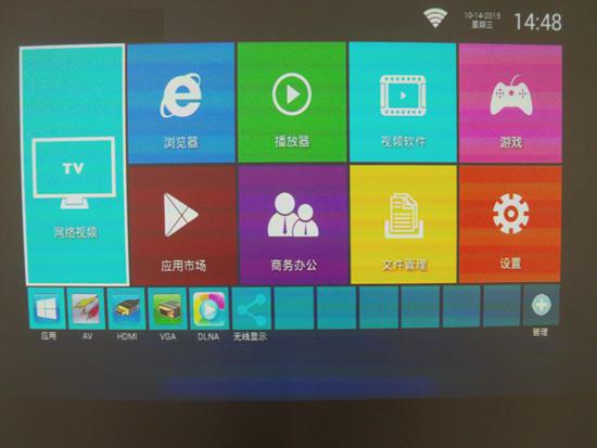 WT-04智能微投,嵌入了目前顶级智能网络芯片RK3188,内置安卓4.4系统,搭载美国最新A9架构,配置真四核CPU,四核GPU,2G DDR,8G FLS内存,64G TF卡扩展。产品采用纯开源网络系统,具备如电脑一样的网络功能,可以任意下载各类APK软件。利用遥控器或者无线、有线键鼠,可以恣意百度搜索、网页浏览、在线点播、视频搜索、网络购物、股票管理、新闻阅读、QQ聊天等网络冲浪。安装各类直播、点播APK软件,央视全套、各省卫视、主流地方电视直播频道任意欣赏;海量网络视频、3D大片随意点播,完美取代数字电视机顶盒。