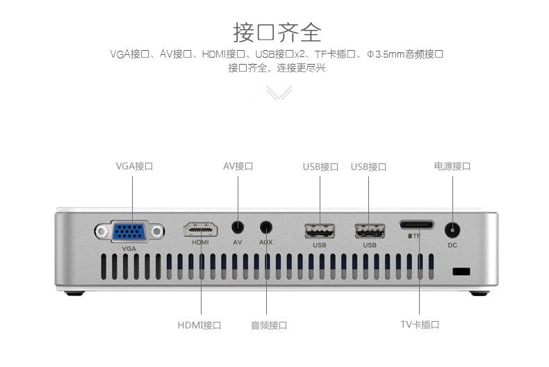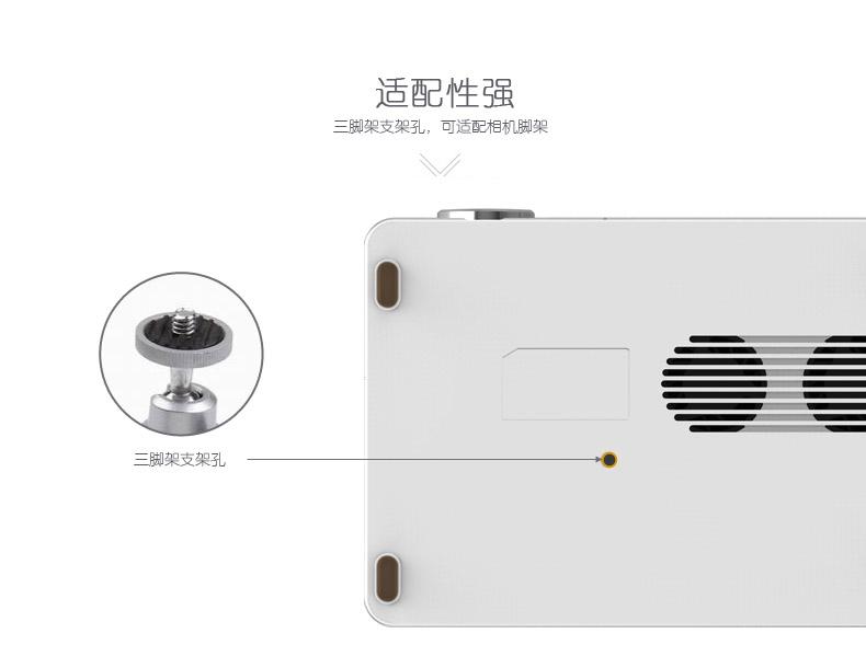 春源丽影WT-04智能投影接口功能齐全,提供了包括HDMI、标准双USB、TF卡扩展槽、VGA、AV和3.5mm音频输出等全功能扩展接口设计,并支持无线同屏互动,能够与主流电视机顶盒、台式电脑、笔记本电脑、智能手机、平板电脑等设备和移动硬盘、U盘、TF卡等存储产品连接进行大屏幕投影。春源丽影WT-04智能投影的全功能接口设计令其拥有极强的可玩性与扩展能力,能够在相当长的时间内满足家庭用户的娱乐和商务办公的需要。