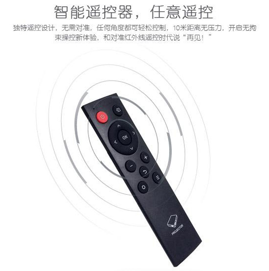配置2.4G高端智能WIFI遥控器,无需对准投影仪,10米内对任何方向都可遥控,随心所欲,完全摆脱需要对准才能遥控的红外遥控时代。这一革新性技术,成为微投领域的一大创举。