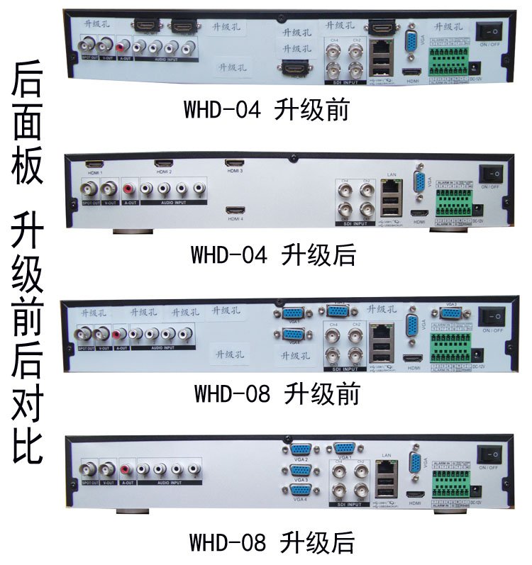 WHD多端子高清输入录像机的上市,极大地满足了客户需要同时录制多路高清信号的要求,是1080P高清录像机的历史性革命。随着产品宣传范围的进一步扩大和广大用户的口碑相传,产品用户采购群愈来愈多,而不同需求的客户也越来越多。为了适应市场需要和满足客户需求,春源科技在软件系统和硬件结构方面进行了全面的升级,主要升级内容如下: