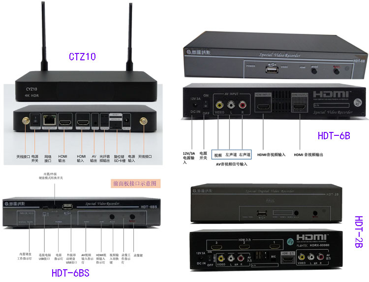 春源丽影CYZ10、HDT-6BS、HDT-6B、HDT-2B、HDT-7S几款机型,适合家庭高清粉丝录制数字电视机顶盒、蓝光播放机、DV机等各类具有HDMI输出的高清播放设备。