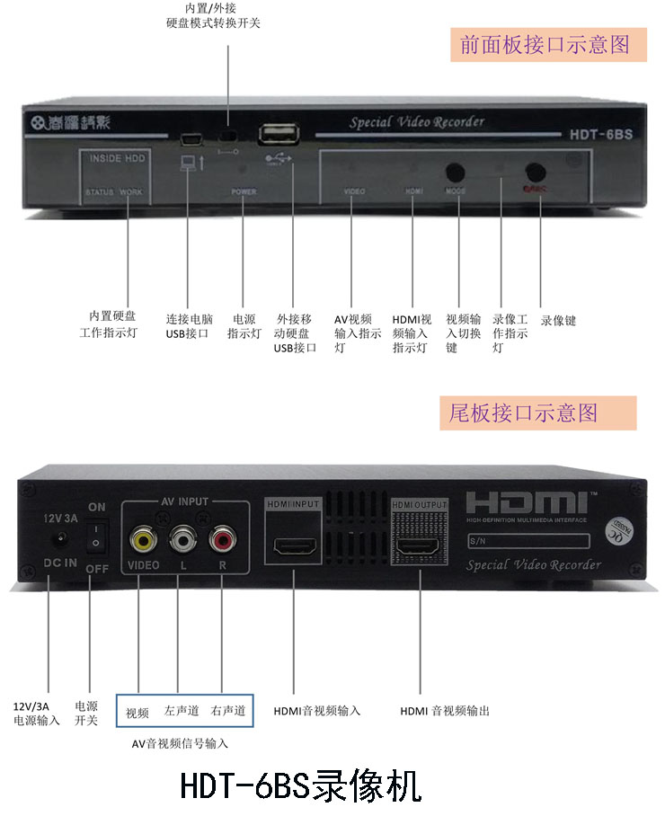 春源丽影推出的老牌机型HDT-6B、HDT-6BS、HDT-2B几款产品,是专业的家庭使用的录像机机型。只需在USB接口插入移动硬盘,从机顶盒的HDMI输出接口通过HDMI高清线接入录像机的HDMI输入接口,再从录像机的HDMI输出接口接入电视机的HDMI输入接口,使用遥控器就可以录像了。录像机还有红白黄CVBS输入接口,老式机顶盒也可接入录像。录像模式有一键开启和停止录像、定时预约录像、自动分段录像、时光平移录像、边录边看、边看边录等便捷丰富的功能。产品支持输入1080P24hz以及以下参数,录像格式为H264,录像画质为1080P24\1080I60\720P60。