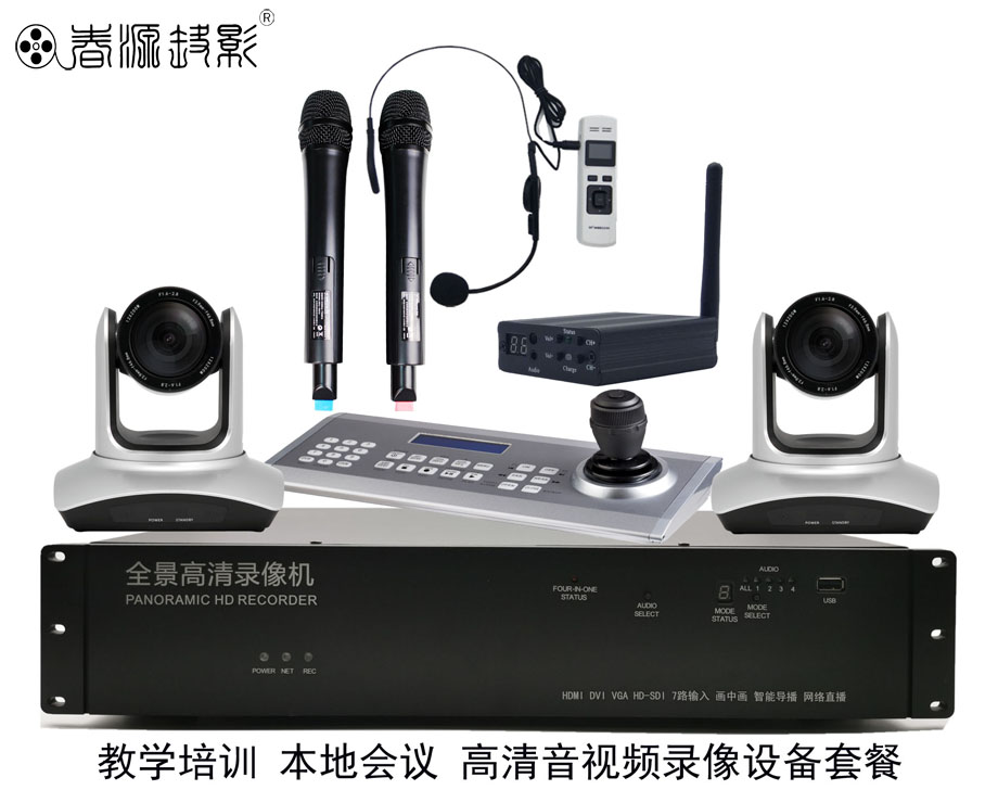 一般教室、讲座培训用教室面积或者中型会议室面积大致在80-100平米,对这种规模的教室录像,有多种设备套餐,根据单位具体需要灵活选择,深圳春源丽影电子科技有限公司研发的CYHL-35套餐,采用WHDpro-01全景录播主机,搭载两台自带云台式CYC19高清摄像机、1个控制键盘、1个FJ-02激光教鞭无线话筒(头戴式或者领口夹式)、1个手持无线话筒,形成一套完备的音视频录像系统。CYHL-35套餐的的卓越优势是可以将老师在讲台上的演讲音容笑貌以及板书文字、教学用高清播放机播放的音视频演示教学资料、电脑播放的课件资料、全体听众的场景和学生回答问题的场景这四个音视频画面,同步高清录制成一个画中画模式的音视频文件,在后期复习、回放以及编辑资料的时候,能够整体展示教室内教学的每个细节场景,全面保存教学资料。该套设备不仅录制清晰度高,音质效果好,而且具有丰富的网络直播功能,安装操作简易,采购成本也十分低廉,具有极高的性价比。