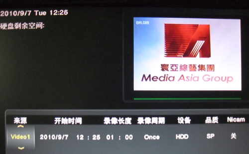 在机器主界面,明晰标有“编辑预约录像”,进入后,可以随意新增预约录像时间。可以设定开始时间、录像长度(时间)、录像周期、录像设备(硬盘、U盘)、录像品质等设置。该功能的实现,大大方便了用户。尤其在客人不能自由安排时间欣赏节目的时候,可以提前将信号源连接线插入GL-01,通过该功能,提前设置好录制时间。即使用户不在现场,到预约的时间后,机器会自动开始录制,录制时间完成后,会自动停止录制。