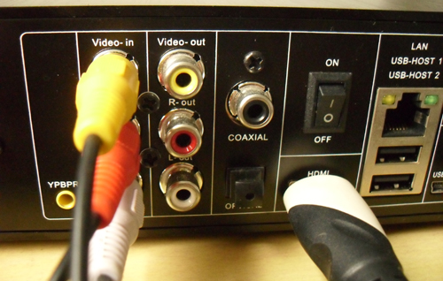 HDMI连接电视机;视频源连接IN输入。