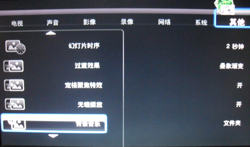 可以在设置里的其他选项设置图片播放的背景音乐、幻灯格式、魔幻转换等模式
