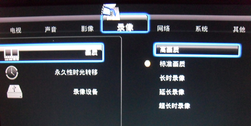 可以方便的进入系统设置,画质选项具有高画质、标准画质选项。