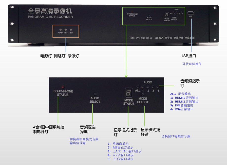 (一)、四合一全景输入和录制