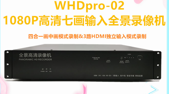 WHDpro-02的音视频导播模式,是目前具有导播功能的录播机中尤为便捷的一款机器。具备的科学的音视频匹配和导播模式,可以满足各类录像领域的使用!