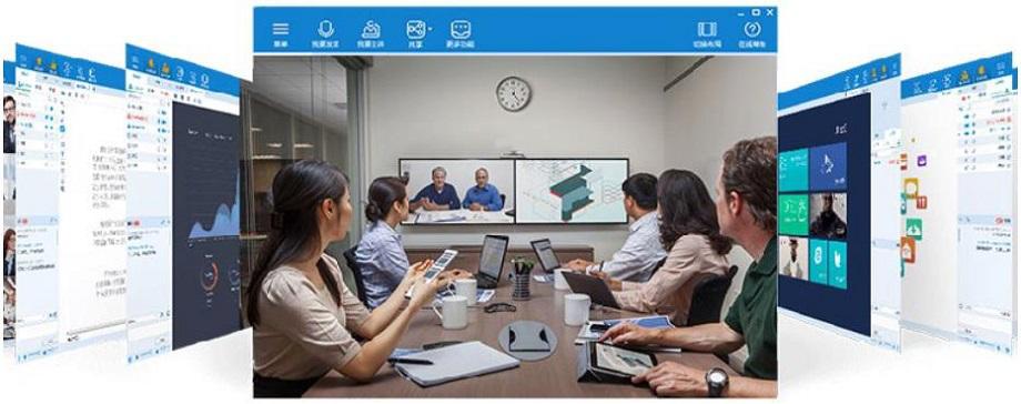 采用 SaaS 云计算技术、即插即用无需专人维护、自动在线更新升级的电信级应用视频会议系统,可以实现快速远程协作、文件共享、屏幕共享、远程会议控制和即时通信文字聊天。无需专人值守、无需专网专线,使用成本更低、网络带宽限制少。
