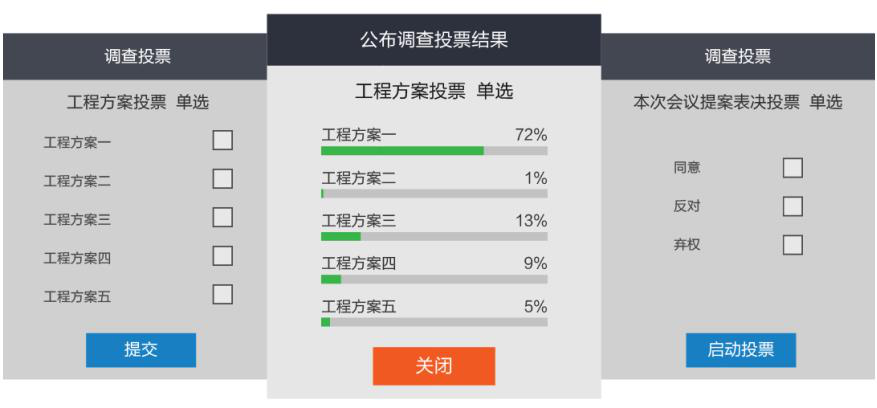 支持在线投票,或者展开问卷调查,投票结束后公示投票结果。